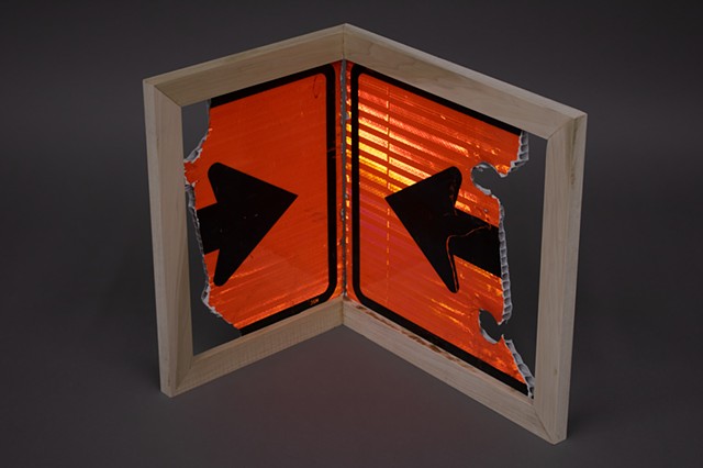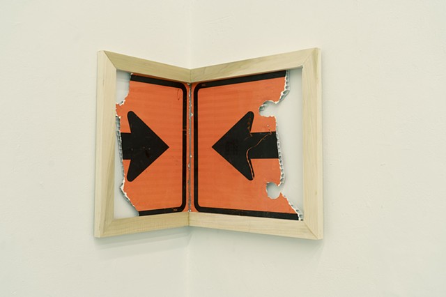 Standards of Care (2026) discarded corrugated plastic construction sign in poplar wood frame